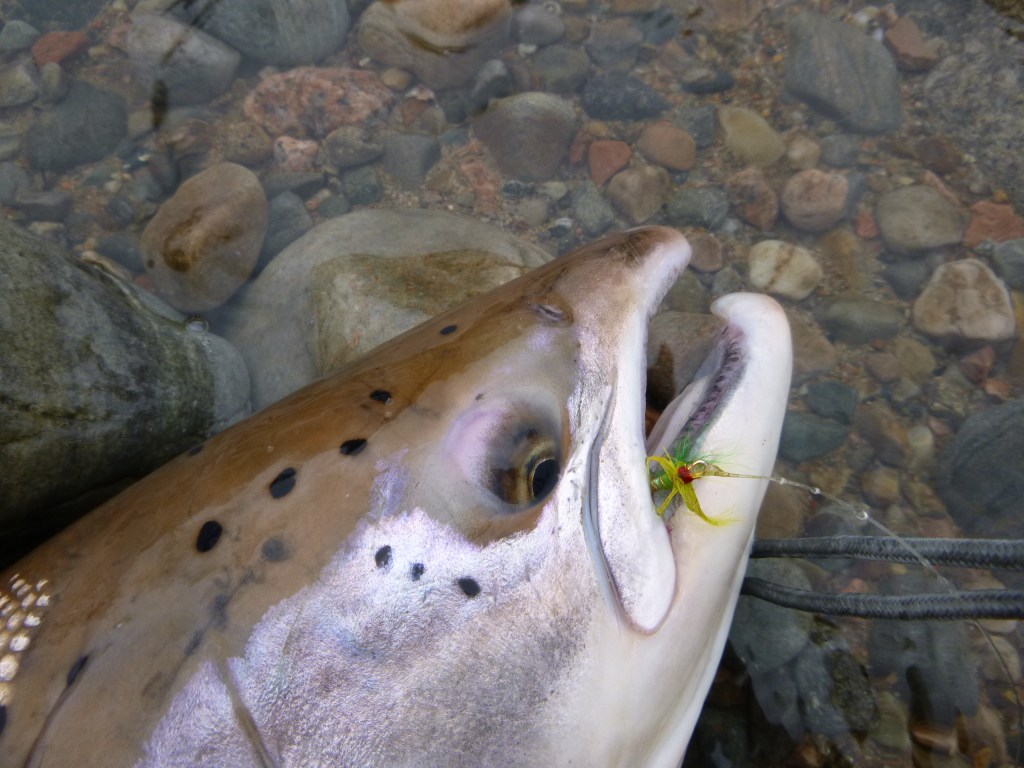 As the week went on we caught several more fish, a couple on Frances flies, one each on the NessC and Black & Yellow Shrimp. There was another fish for the Green Shrimp, this time a first ever salmon for Kiloran Buckler landed by herself in the Middle Bobby pool.